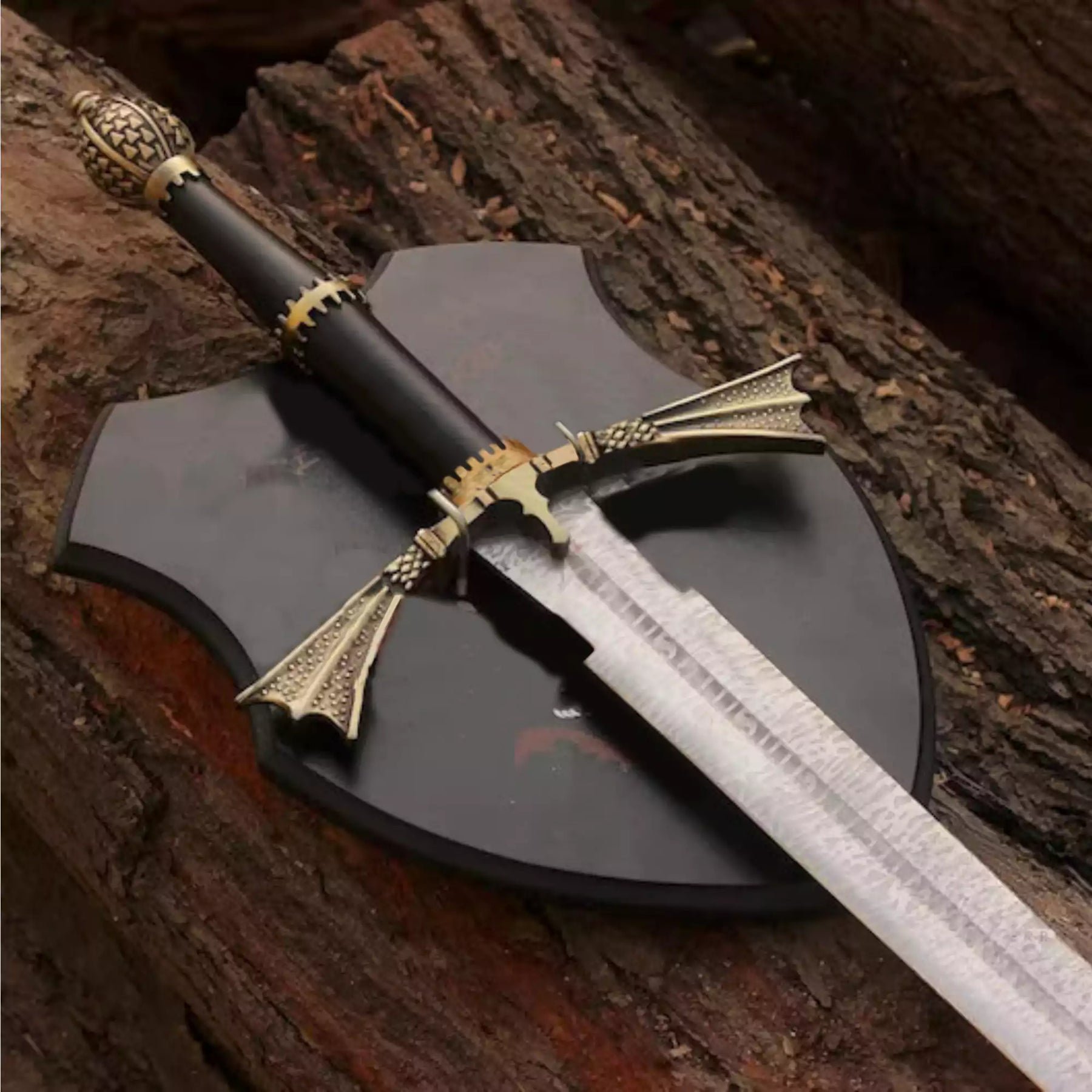 Crafted after close study of the original House of the Dragon hero prop, this replica showcases etched detailing on a 48" stainless spring steel blade, a leather-wrapped hilt, and hand-finished metal accents for an authentic look.